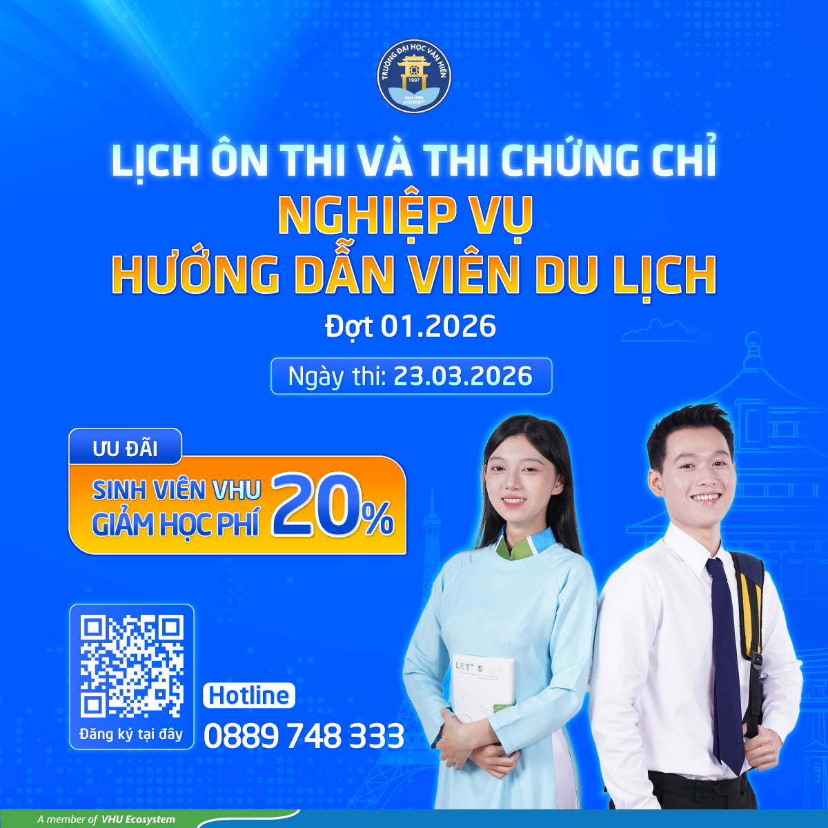 Hướng đến việc hỗ trợ người học chuẩn bị tốt cho kỳ thi và tham gia thi chứng chỉ Nghiệp vụ Hướng dẫn viên Du lịch, Viện Doanh Trí trường Đại học Văn Hiến tổ chức chương trình ôn thi và thi Nghiệp vụ Hướng dẫn viên Du lịch (Nội địa & Quốc tế) theo đúng quy định hiện hành.